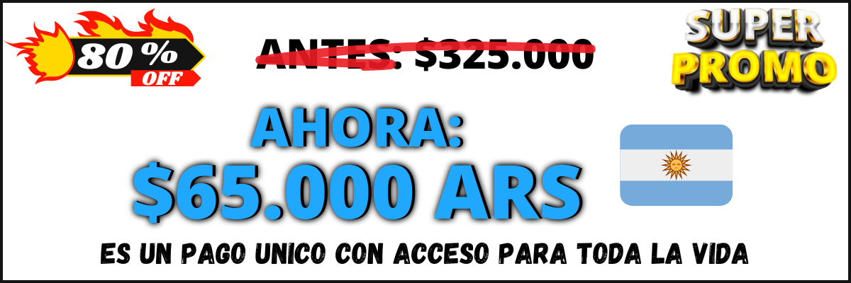 Una mínima inversión que podrás aplicar desde cualquier parte del mundo, sin mensualidades y teniendo acceso al contenido más completo y actualizado de por vida. Es prácticamente un regalo que no vas a encontrar en otro lugar.