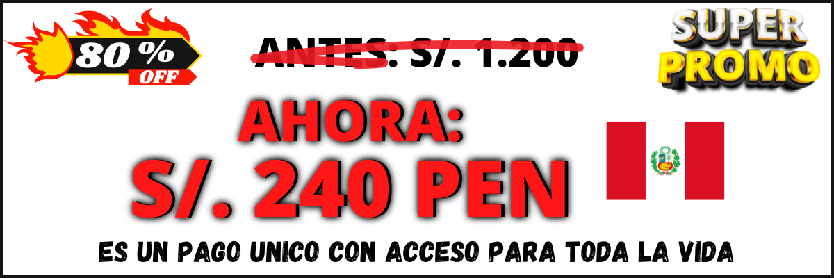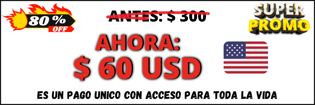 El precio normal del curso es de $300 dólares. Pero si aprovechas la oferta del 80% de descuento, te quedaría en solo $60 dólares. (El precio esta especificado en dólares ya que es un curso Internacional, pero en el momento de realizar la inscripción, se convertirá en tu moneda y podrás abonar con medios de pago locales).